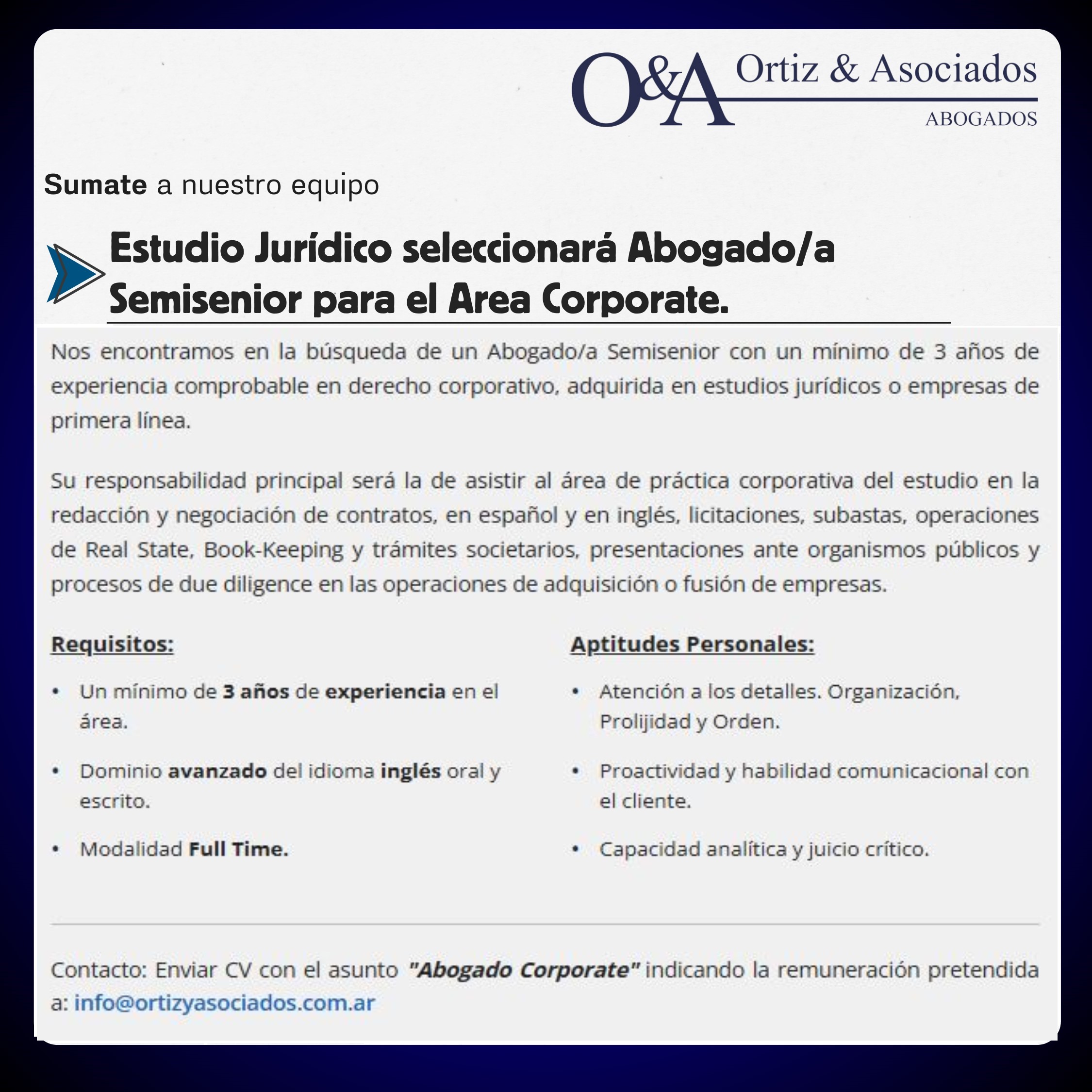 El asesoramiento de ESTUDIO ORTIZ & ASOCIADOS fue liderado por los socios Jorge D. Ortiz y Vanesa Fernanda Mahia, asistidos por los abogados Constanza Soledad Rudi y Jerónimo Cassisi.